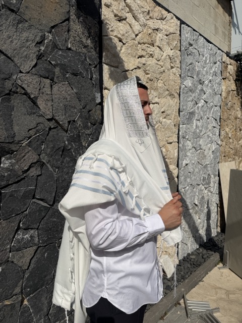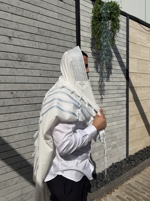 A high-quality acrylic Tallit that combines a fresh, luminous look with maximum wearing comfort. This model features delicate stripes in sky blue and silver tones, giving the Tallit a modern and calming aesthetic. The silver Atara, decorated with a rich geometric pattern, adds a touch of grandeur and festivity, making this Tallit the perfect choice for those seeking a combination of unique style and a lightweight, pleasant fabric throughout the prayer service.