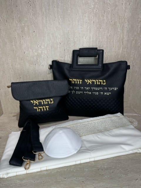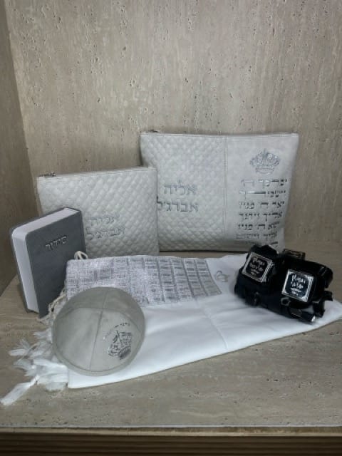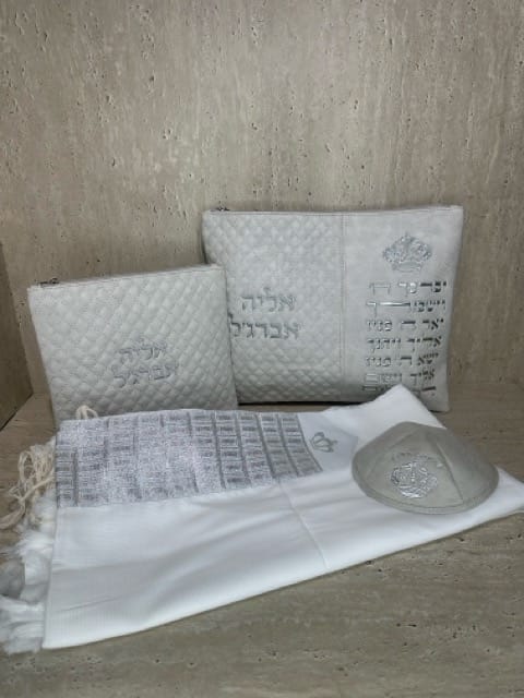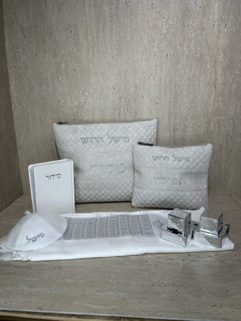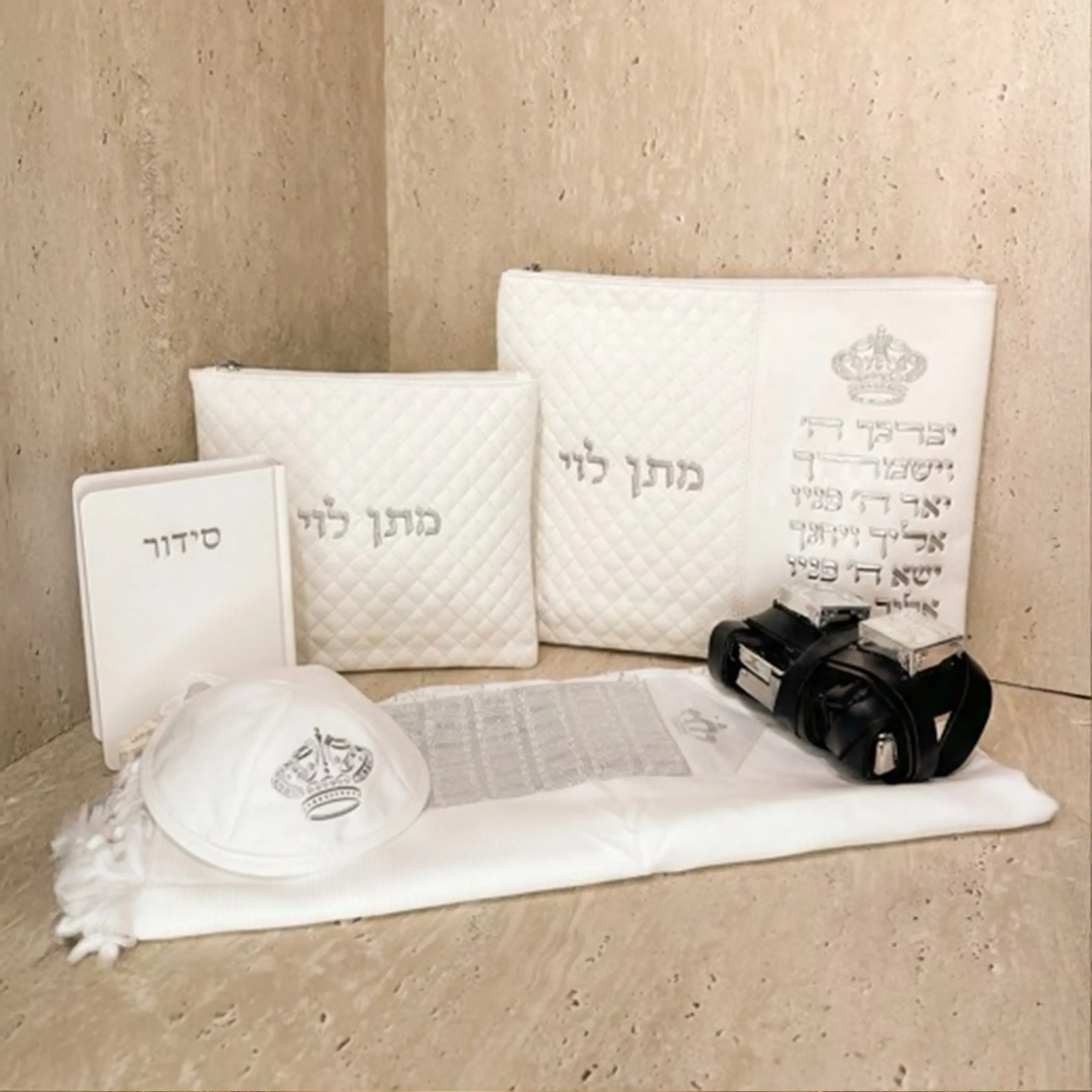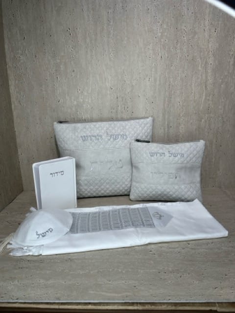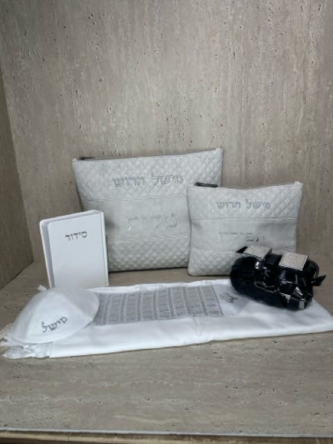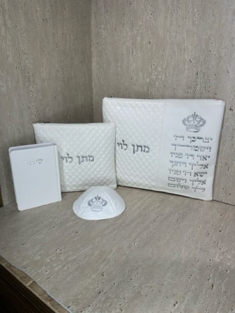 הבחירה במוצרי סטים אצלנו מבטיחה לכם מראה מכובד ומרשים שיוצר הרמוניה בין פריטי הקודש השונים. הסטים מיוצרים מחומרים משובחים כמו עור אמיתי, קטיפה איכותית ורקמות זהב, ומהווים מזכרת רוחנית ומרגשת שתישאר עם בעל השמחה לאורך שנים רבות.