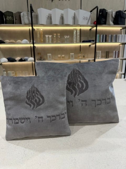תיק לטלית ותפילין דגם ברסלב האש שלי אפור כסוף