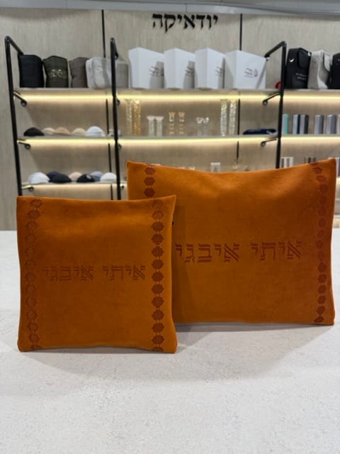 תיק לטלית ותפילין קטיפה כתומה מעוצבת