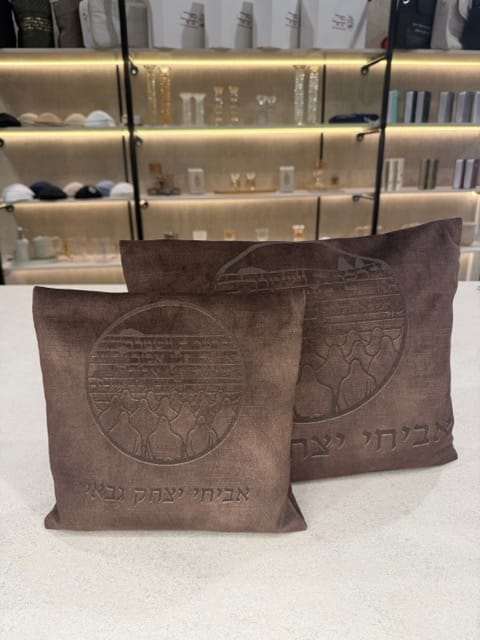 תיק לטלית ותפילין קטיפה חום קפה דגם הכותל וברכת כהנים