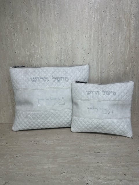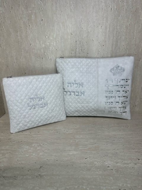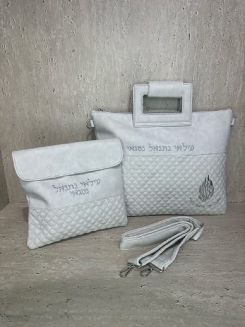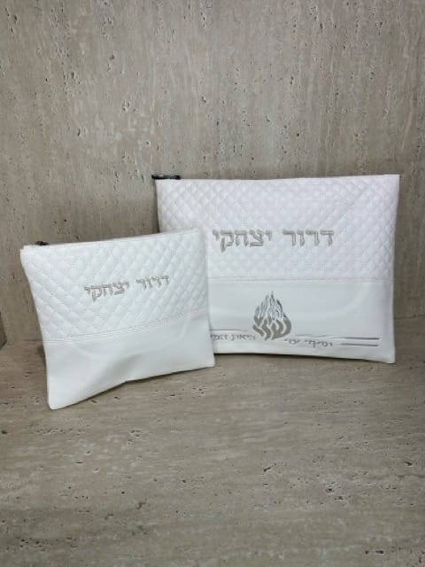 תיק לטלית ותפילין לבן דגם ברסלב האש שלי