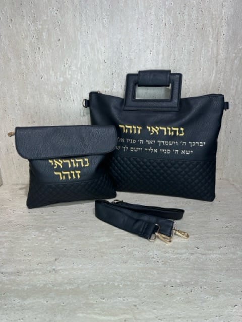 תיק לטלית ותפילין שחור דמוי עור ברכת כהנים