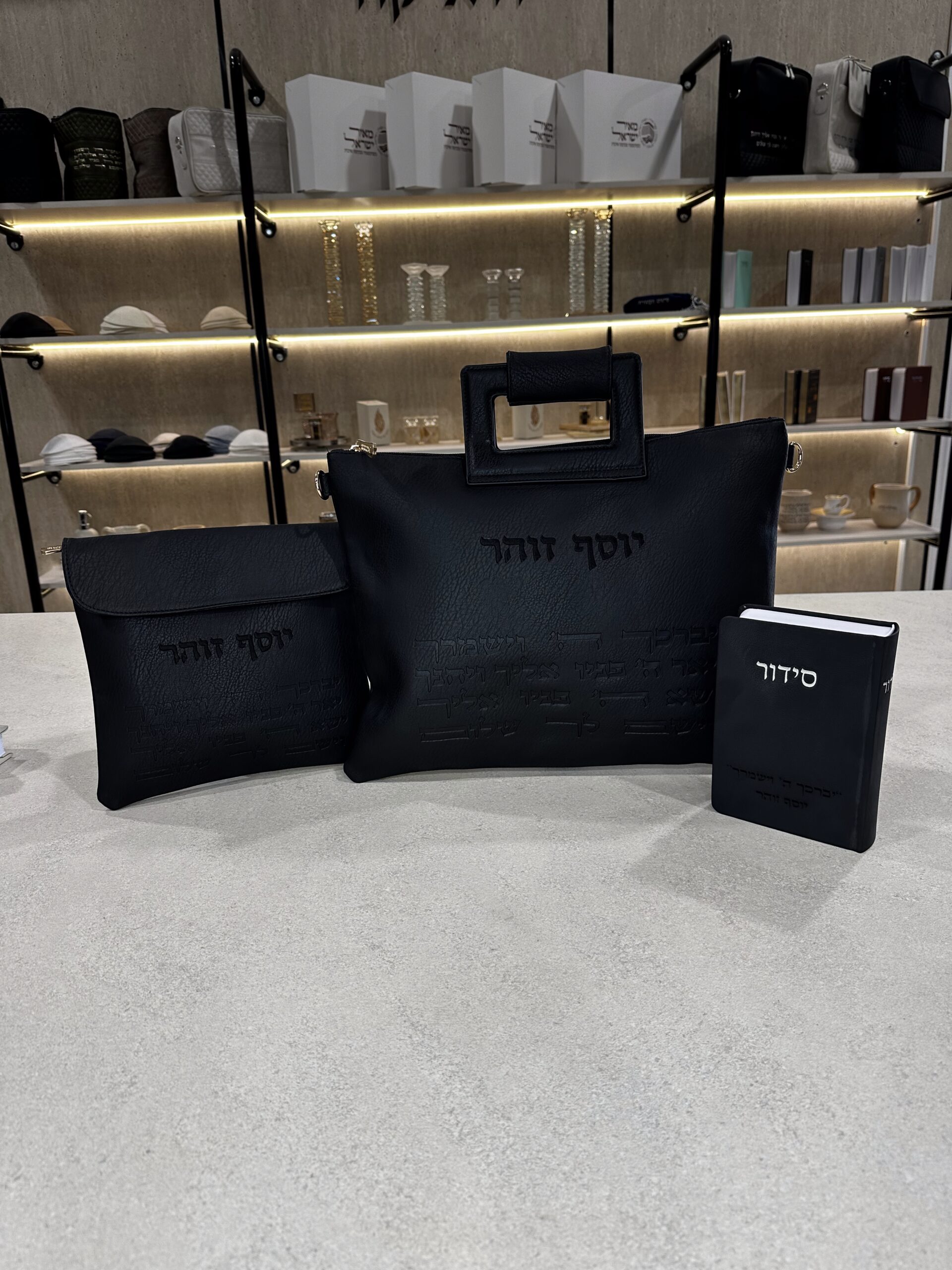 מיוחד! סט כיסויים לטלית ולתפילין דמוי עור שחור