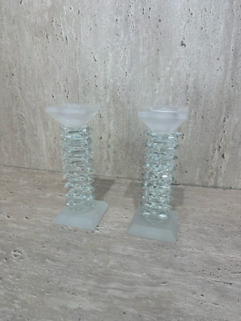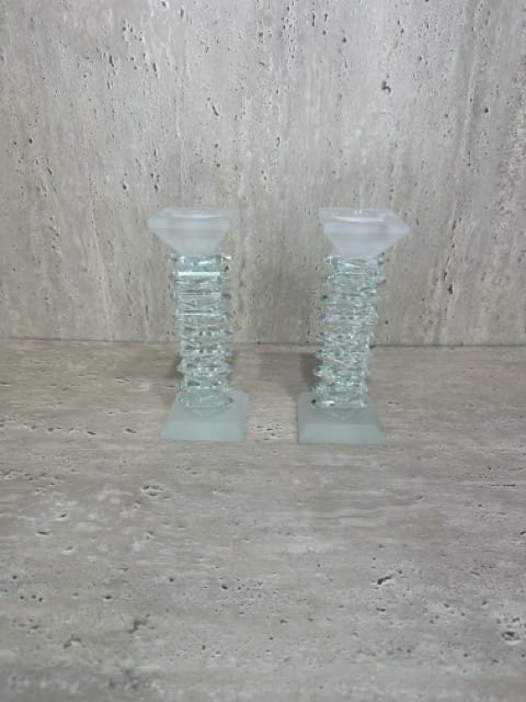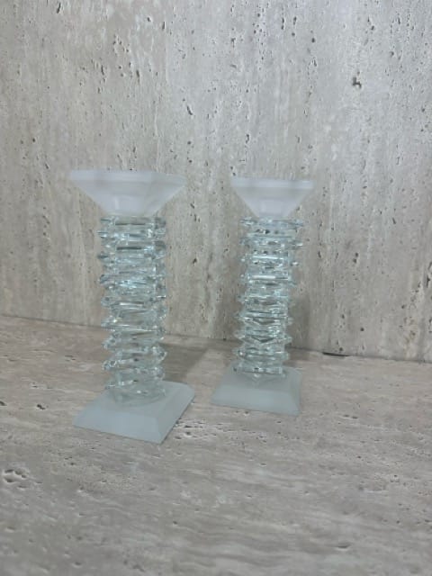 זוג פמוטי קריסטל בשילוב גימור מט ועיצוב שכבות מודרני המעניק מראה יוקרתי ומנצנץ לשולחן השבת והחג.